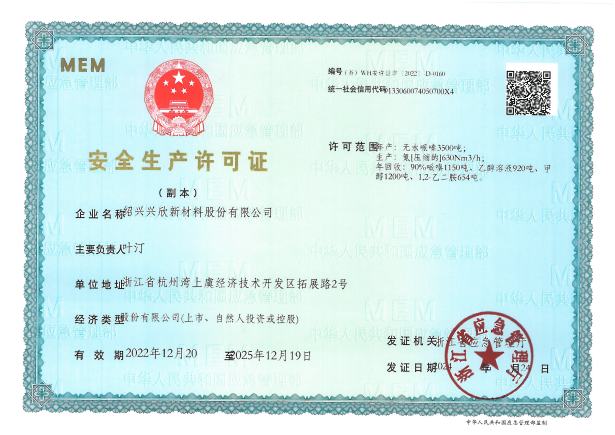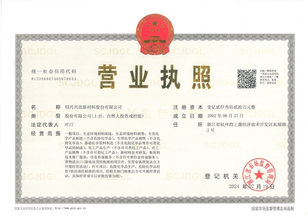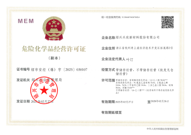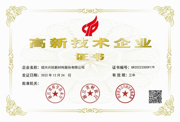 紹興興欣新材料股份有限公司成立于2002年06月27日,占地面積122畝,位于杭州灣上虞經(jīng)濟技術(shù)開發(fā)區(qū)拓展路2號,現(xiàn)有職工200余人,專業(yè)技術(shù)人員50余人;博士、碩士研究生30余人組成的一支知識型、專業(yè)化的技術(shù)科研團隊。公司面向全球市場,專業(yè)開發(fā)電子化學品、環(huán)?;瘜W品、醫(yī)藥中間體、高分子材料等先進新材料重點領域的省級科技型企業(yè);建有浙江上虞、安徽東至兩個生產(chǎn)基地。目前為“國家高新技術(shù)企業(yè)”、浙江省“隱形冠軍”企業(yè)、浙江省專精特新中小企業(yè);建有“省級”研究開發(fā)中心,共建天津大學浙江紹興研究院電子化學品研發(fā)中心。